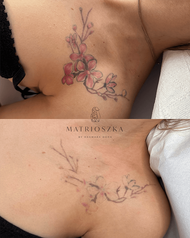 Efekt: Stopniowe rozjaśnienie lub całkowite usunięcie tatuażu, minimalne ryzyko powstania blizn.
